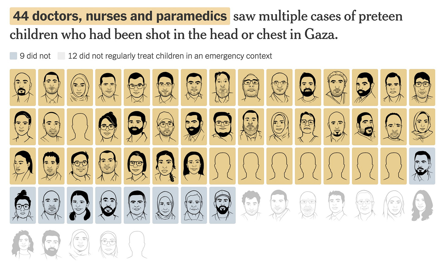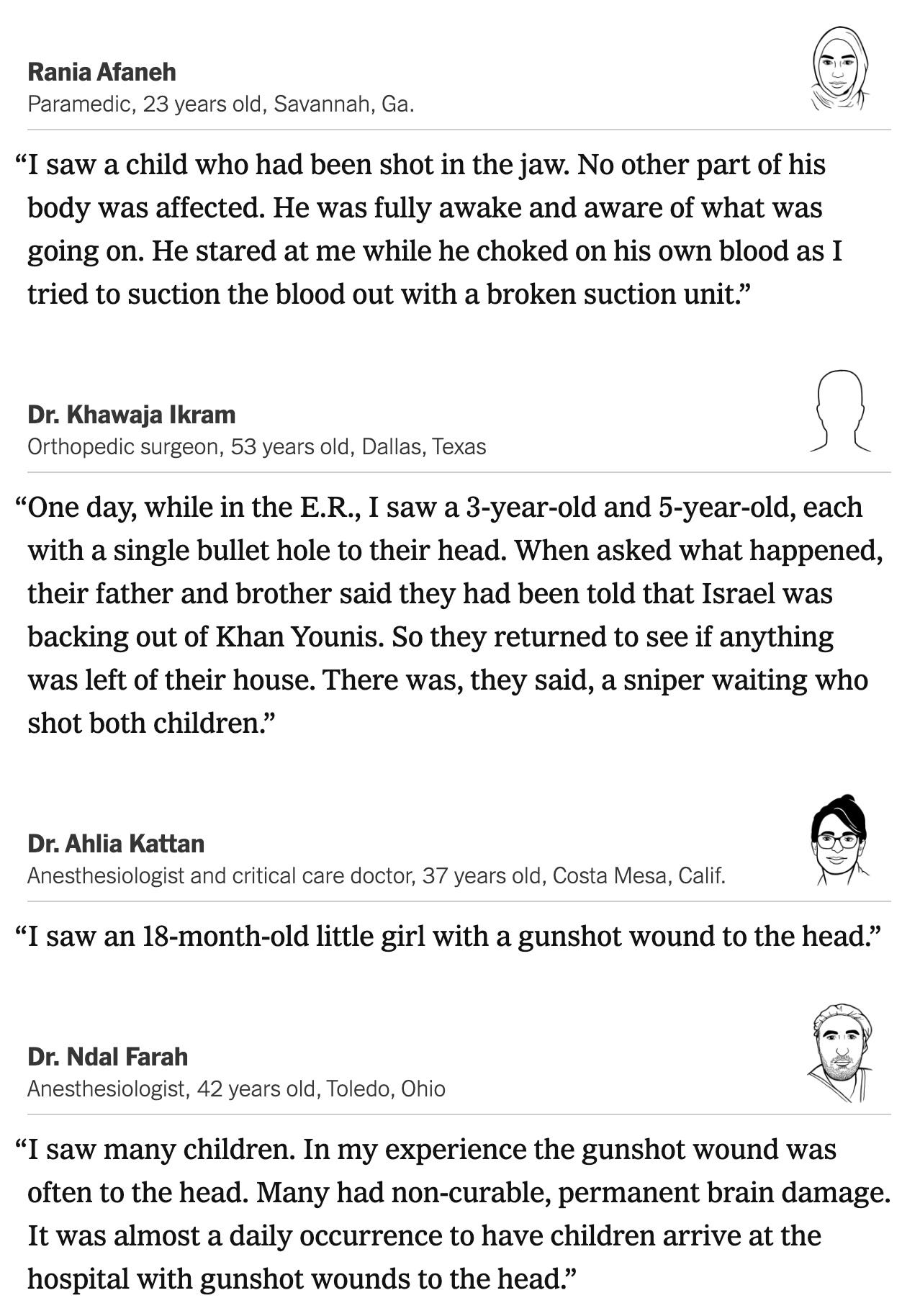 We know that Israeli soldiers and Israeli drones regularly target Palestinian children. On October 9, 2024 (almost 11 months ago), the New York Times ran a piece that focused on the experiences of medical personnel who volunteered in Gaza.