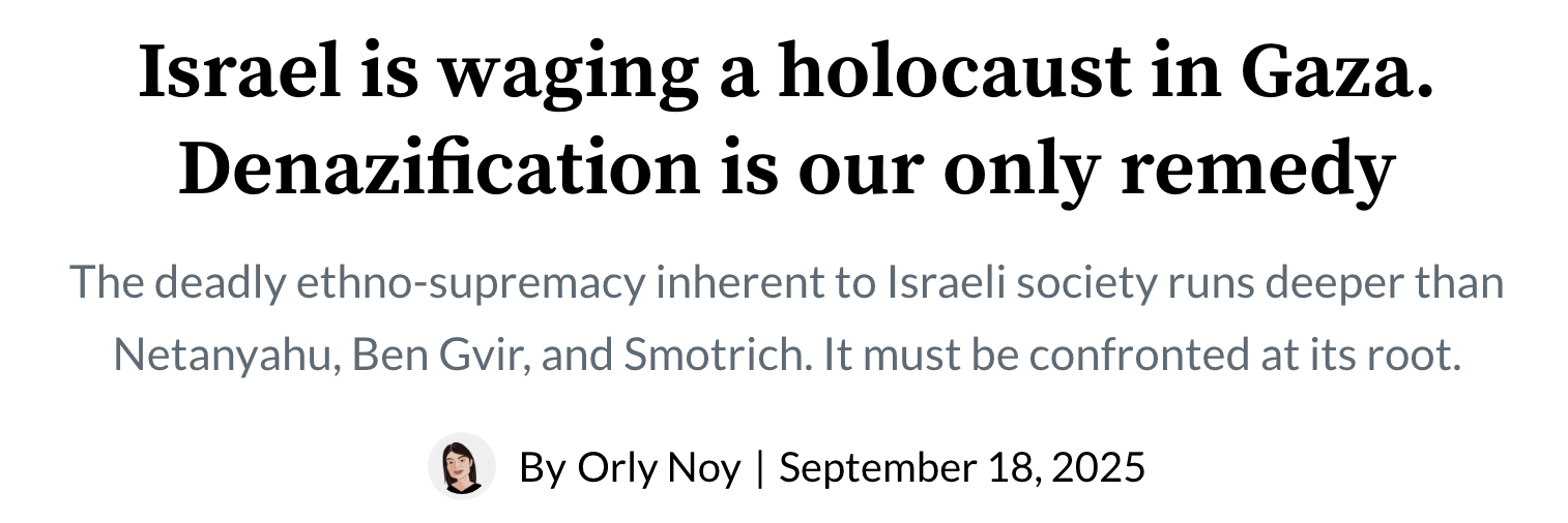 I want to highlight two articles from the past month. Both were written by Jewish journalists, one a leftist Israeli, Orly Noy, the other a conservative American, Bret Stephens.